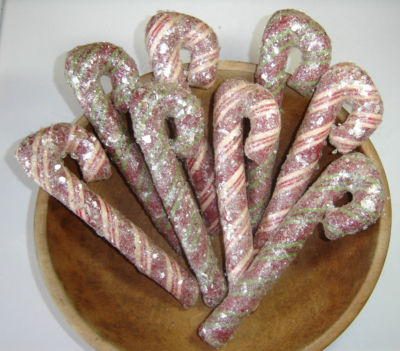 Primitive candy cane bowl fillers ornaments mica Mumm