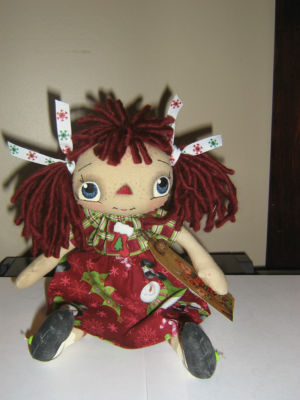 Primitive Raggedy Holiday ann doll/tag