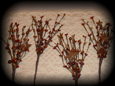 Title (ebay affiliate link): Primitive Gathering Lot of 4 Pip Berry Rusty Star Picks-Burgundy and Mustard