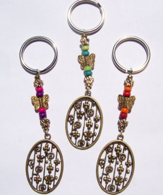 Title (ebay affiliate link): U-PICK! Antique-Gold *BUTTERFLY* KEYCHAINS Wood / Metal BEADS Hand-crafted! L@@K