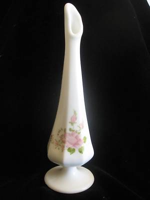 FENTON MILK WHITE GLASS HANDPAINTED FLORAL VASE -SIGNED
