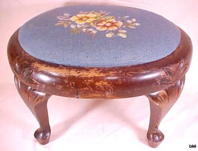 Title (ebay affiliate link): Antique Victorian Petite Point Top Foot Stool Hand Carved Accents