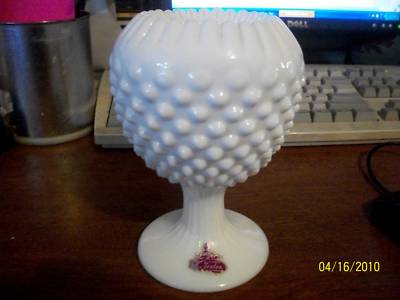 VINTAGE FENTON HOBNAIL MILK GLASS IVY BALL VASE CRIMPED