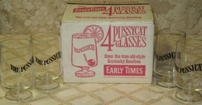 Title (ebay affiliate link): 4 Vintage Early Times The PUSSYCAT Pedestal GLASSES NEW ORIGINAL BOX KY Bourbon