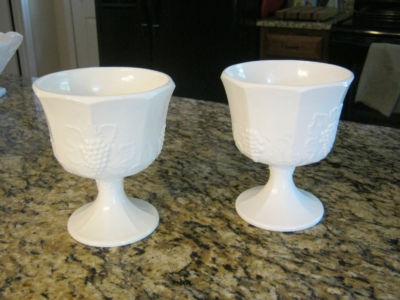 2 White Milk Glass Goblet- Footed Candy Dish Large Grape