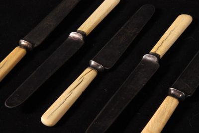 Title (ebay affiliate link): Set of 5 Antique Ox Bone Handled 19th Century Civil War Era Dinner Knives NR