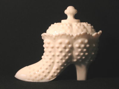 FENTON Milk Glass Hobnail SHOE Candy Box - Vintage NR