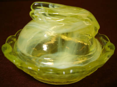 VASELINE MILK SLAG GLASS BUNNY RABBIT ON NEST DISH SALT