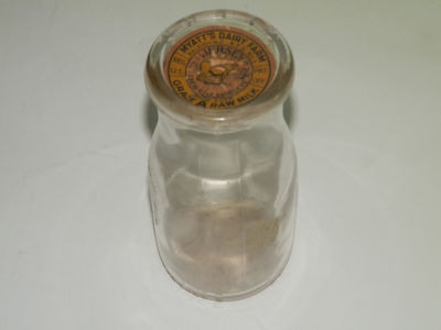 VERY OLD GLASS MILK BOTTLE JERSEY CREAMLINE GRADE A RAW MILK PAPER LABEL