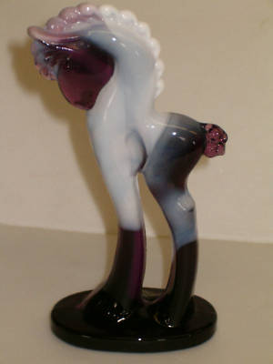 AMETHYST PURPLE AND MILK SLAG ART GLASS PONY HORSE DECO