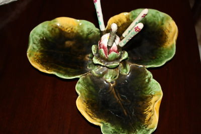 Title (ebay affiliate link): Antique Majolica Triple Lobed Leaf Relish Server with Knives