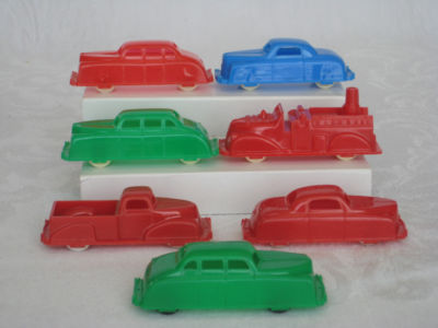 Title (ebay affiliate link): VINTAGE RENWAL HARD PLASTIC 3" CARS AND TRUCKS 7 PIECE LOT