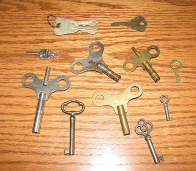 LOT OF ANTIQUE CLOCK, SKELETON AND FALCON AUTO KEYS