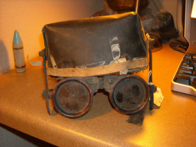 antique welding goggles--- very old --with hood