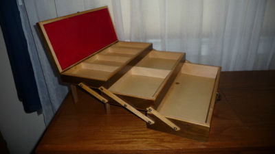 Vintage, Fold-out, Two-tone, Solid Wood, Handcrafted, Gernan Made Sewing Box