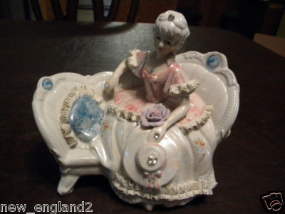 Title (ebay affiliate link): Victorian Era Lady Sitting On Couch Figurine w/Rhinestones & Lace Capodimonte??*