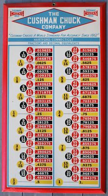 Vintage Cushman Chuck Co. Garage Shop Tin Sign Decimal Equivalent Connecticut