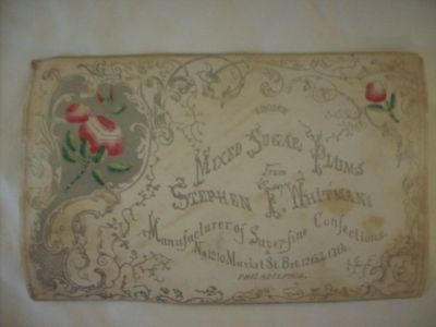 Title (ebay affiliate link): Early Antique Advertising Stephen Whitman's Candy Paper Label Mixed Sugar Plums