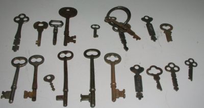 Title (ebay affiliate link): 20 Antique old skeleton/plus key lot furniture cabinet barrel clock keys lot25e