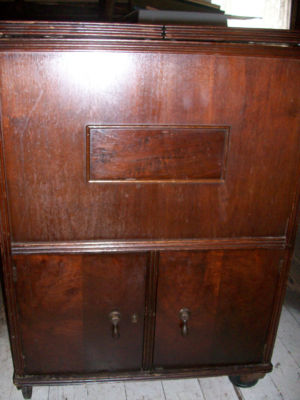 Antique Pop-Out Liquor Cabinet Hidden Bar With Cooler Cabinets and Divider