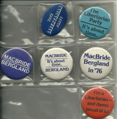 Title (ebay affiliate link): Great Collection of 1976 issued Libertarian Campaign buttons - MacBride for Pres