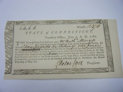 Title (ebay affiliate link): 1782 Revolutionary War Patriot Document PETER COLT - Rare Signed Receipt COA NR
