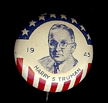 1945 HARRY S. TRUMAN r/w/b LITHO PICTURE POLITICAL BUTTON