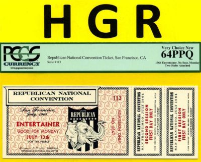 Title (ebay affiliate link): HGR 1964 Republican National Convention Ticket PCGS NEW 64PPQ