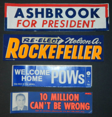 Title (ebay affiliate link): USA : 4 old bumper stickers - Rockefeller, POW, Ashbrook