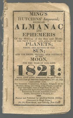 Title (ebay affiliate link): Early American almanac 1821 HUTCHIN'S IMPROVED ALMANAC & EPHEMERIS
