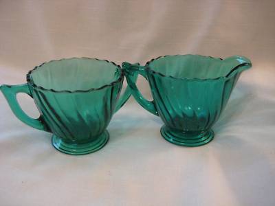 Title (ebay affiliate link): 1930's Jeanette Aqua Ultramarine Swirl Cream & Sugar