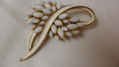 Title (ebay affiliate link): Vintage DESIGNER SIGNED ART MILKGLASS & ENAMELED BROOCH PIN