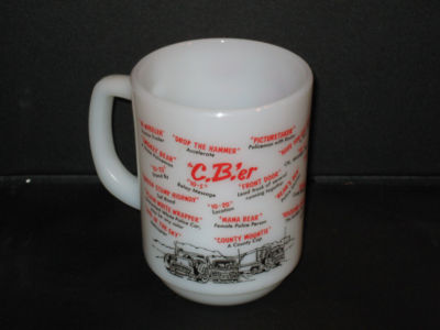 VINTAGE ANCHOR HOCKING FIRE KING C.B.'ER MILK GLASS COFFEE MUG - TRUCKER TALK