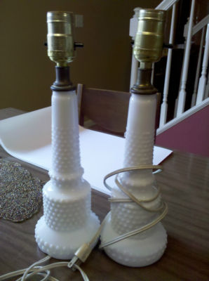 White Vintage Hobnail Milkglass lamps