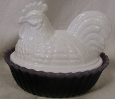 Title (ebay affiliate link): Milk Glass & Purple Opal Covered Rooster Box - WG Mould