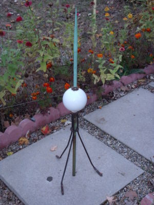 Title (ebay affiliate link): ANTIQUE PRIMITIVE COPPER LIGHTNING ROD WITH STAND AND MILK GLASS BALL 35" TALL