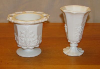 Title (ebay affiliate link): WESTMORELAND MILK GLASS/MILK WHITE PANELED GRAPE OPEN LATTICE VASES