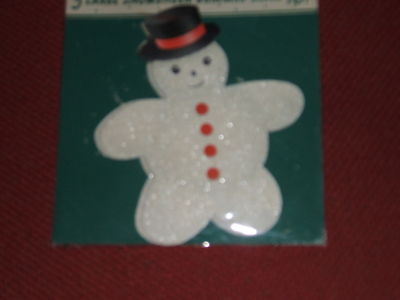 LARGE VINTAGE CHRISTMAS PACKAGE STICKER SNOWMAN SNOWSHEEN GUMMED SEALS