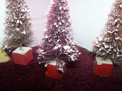 Title (ebay affiliate link): 3 OLD PURPLE PINK Bottle Brush Trees 4 1/2" wood base Shabby Train Xmas Display