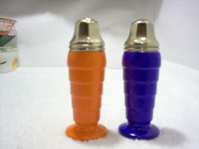 Title (ebay affiliate link): Moderntone Platonite "Blue & Orange Salt & Pepper set 1940's &1950s Hazel Atlas