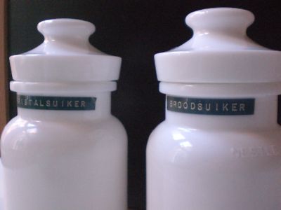 Title (ebay affiliate link): Vintage MILK GLASS Nestle STORAGE JARS Sweets Advertising 30s 1950s Shabby Chic