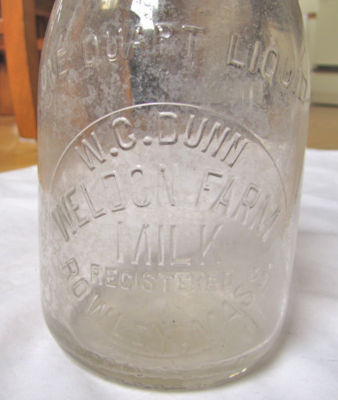 Title (ebay affiliate link): W.C. Dunn, Weldon Farm - Rowley, MA One Quart Glass Milk Bottle - 9 1/2"