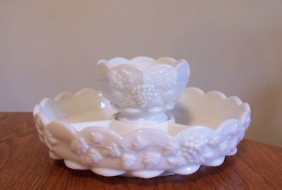 Title (ebay affiliate link): WESTMORELAND PANELED GRAPE MILK GLASS VEGGIE/CHIP AND DIP SERVER