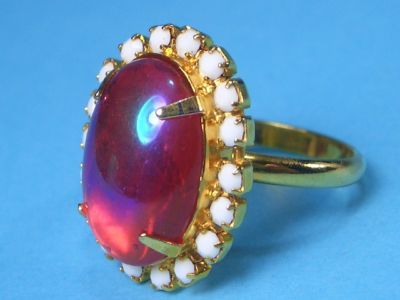 Title (ebay affiliate link): Vintage Dragon's Blood Breath & Milk Glass Bead Costume Cocktail Ring Adjustable