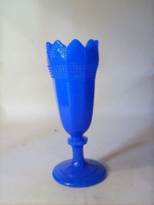 VICTORIAN BLUE MILK GLASS GOBLET VASE