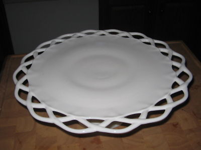 LE SMITH PEDESTAL MILK GLASS LACE EDGE CAKE STAND
