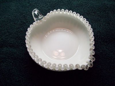 Title (ebay affiliate link): Fenton Silver Crest Milk Glass Heart shaped candy bon bon dish