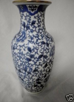 BEAUTIFUL PORCELINE BLUE & WHITE FLORAL CHINESE VASE