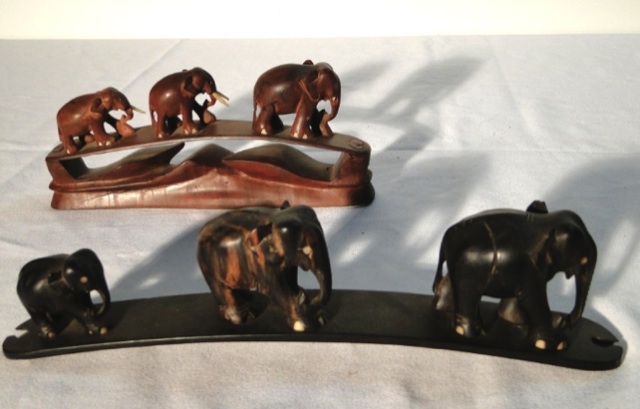 2 Finely Carved Old Wood Elephant Bridges/Herds India