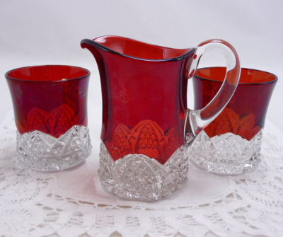 ANTIQUE Ruby Red Stained & Cut Glass JUG & Glasses Set